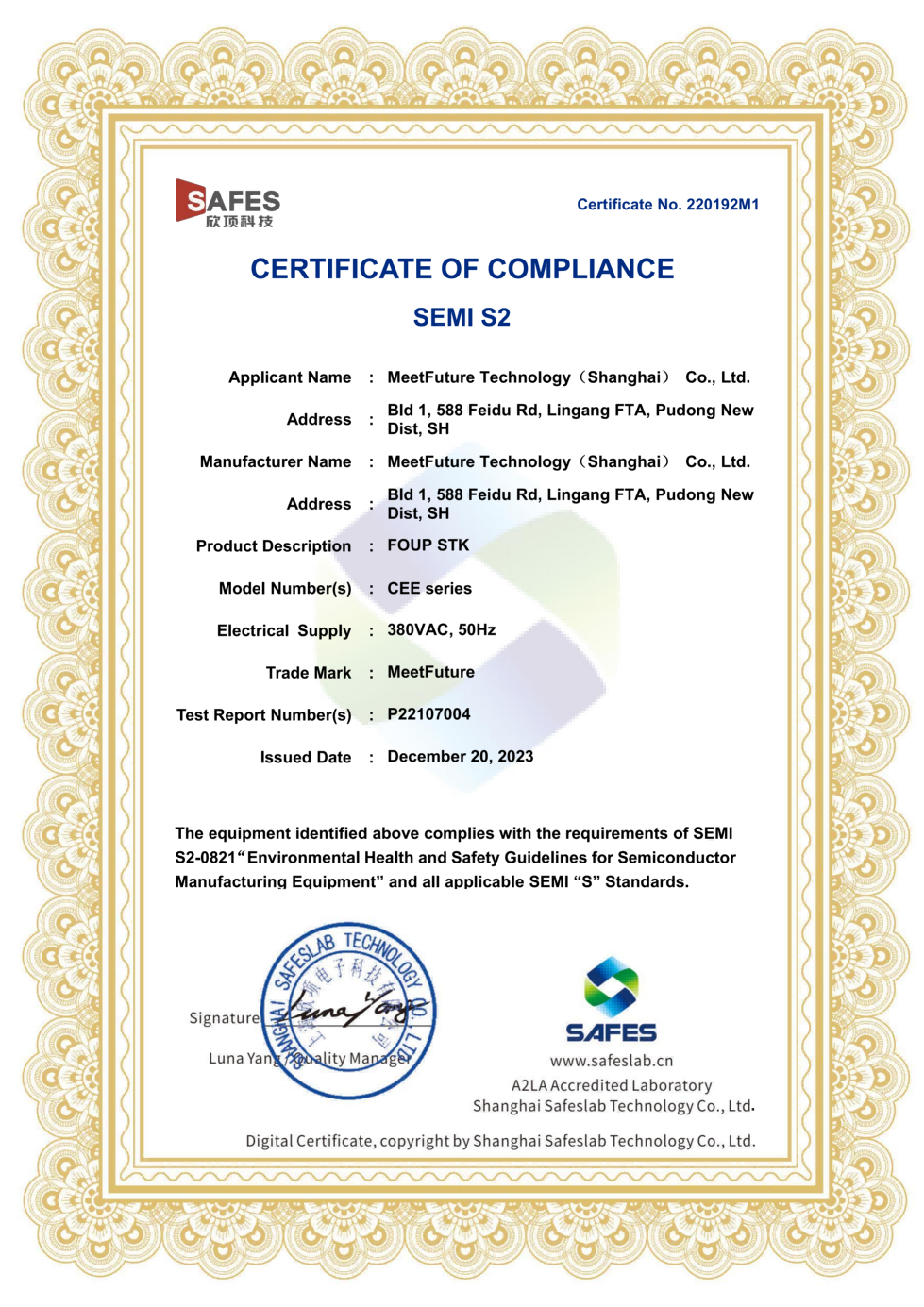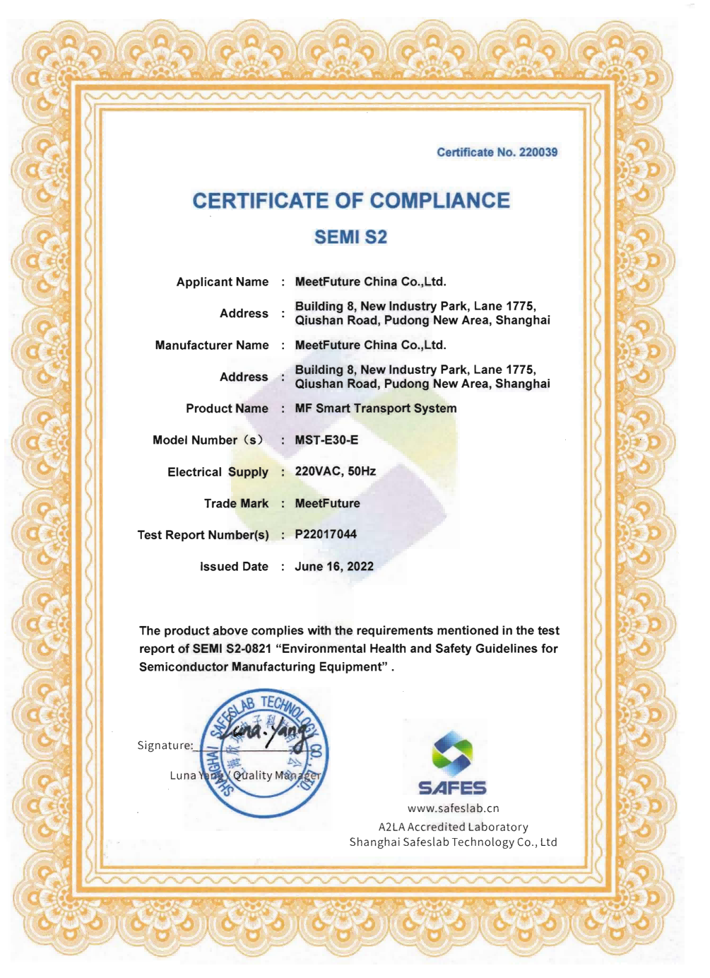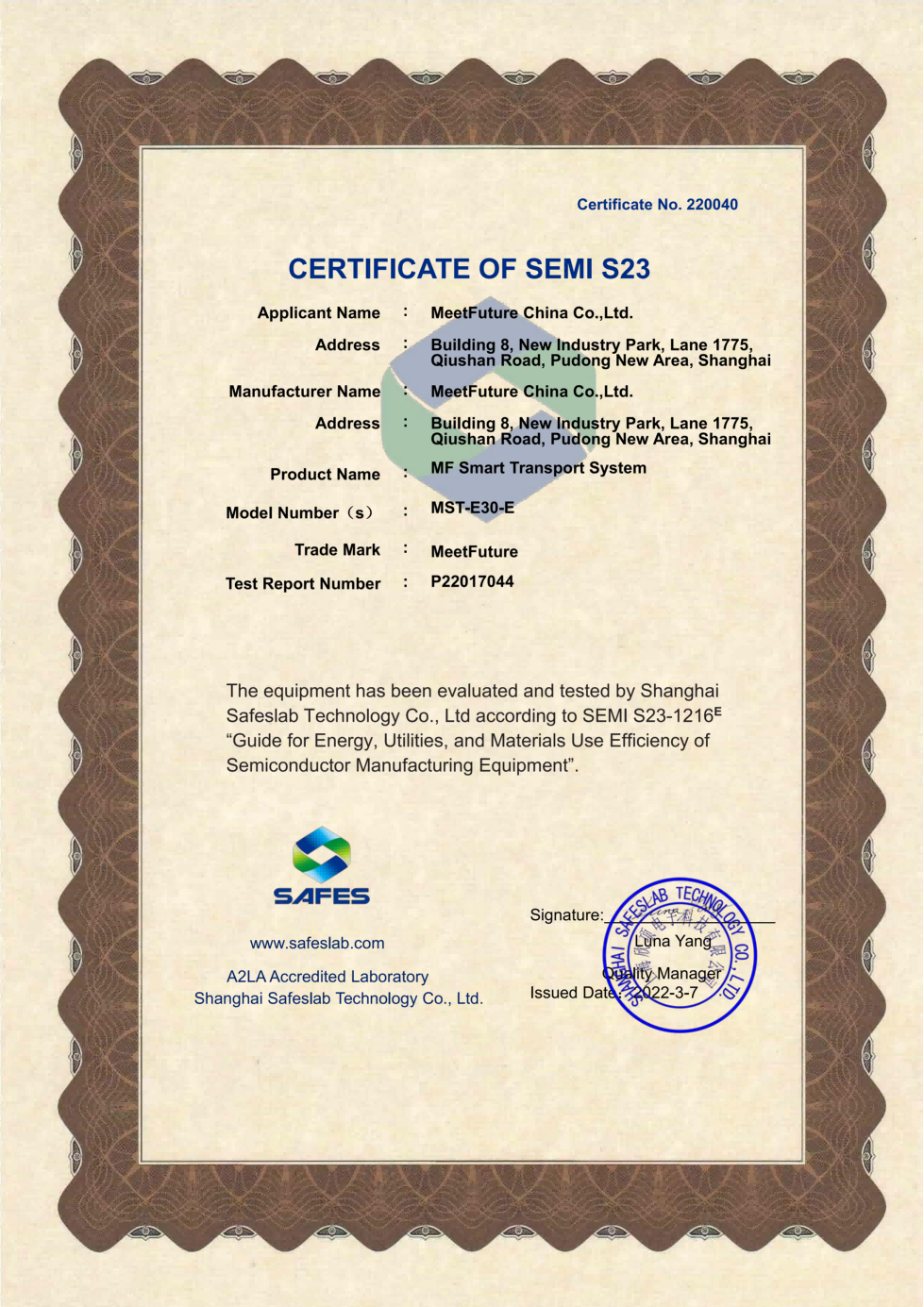自 2018 年以来,NO钱包官网科技取得了国际标准化组织(ISO)质量管理体系(ISO 9001)、环境管理体系(ISO 14001)和职业健康安全管理体系(ISO 45001)认证。在AMHS产品技术体系领域,我们遵循半导体设备标准通讯协议,包括SEMI E37、 E82、E30、 E84、E10 等,使其易接入半导体晶圆厂MES系统来实现数据交互。